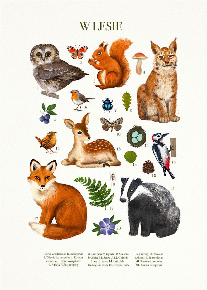 Once a child psychologist, now an illustrator, Natalia is a graduate of the postgraduate course in Graphic Design at the Academy of Fine Arts in Łódź. She loves nature, botanical illustrations, encyclopedic drawings and school charts. Her posters are designed so that in their ambiance one can take a break from the noisy stimuli that the outside world is providing us with in excess. Privately, she is mum to little Krysia and is a lover of picnics and long walks.