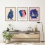 Galeria ścienna z plakatami znakomitych polskich artystek: Moniki Gębuś, Anny Rudak i Joanny Rosado. Grafiki świetnie komponują się razem, połączone jasnym tłem i odcieniami niebieskiego i granatu. Plakaty są gotową inspiracją, którą możesz przenieść na swoją ścianę! Dodaj wnętrzu oryginalności i charakteru!