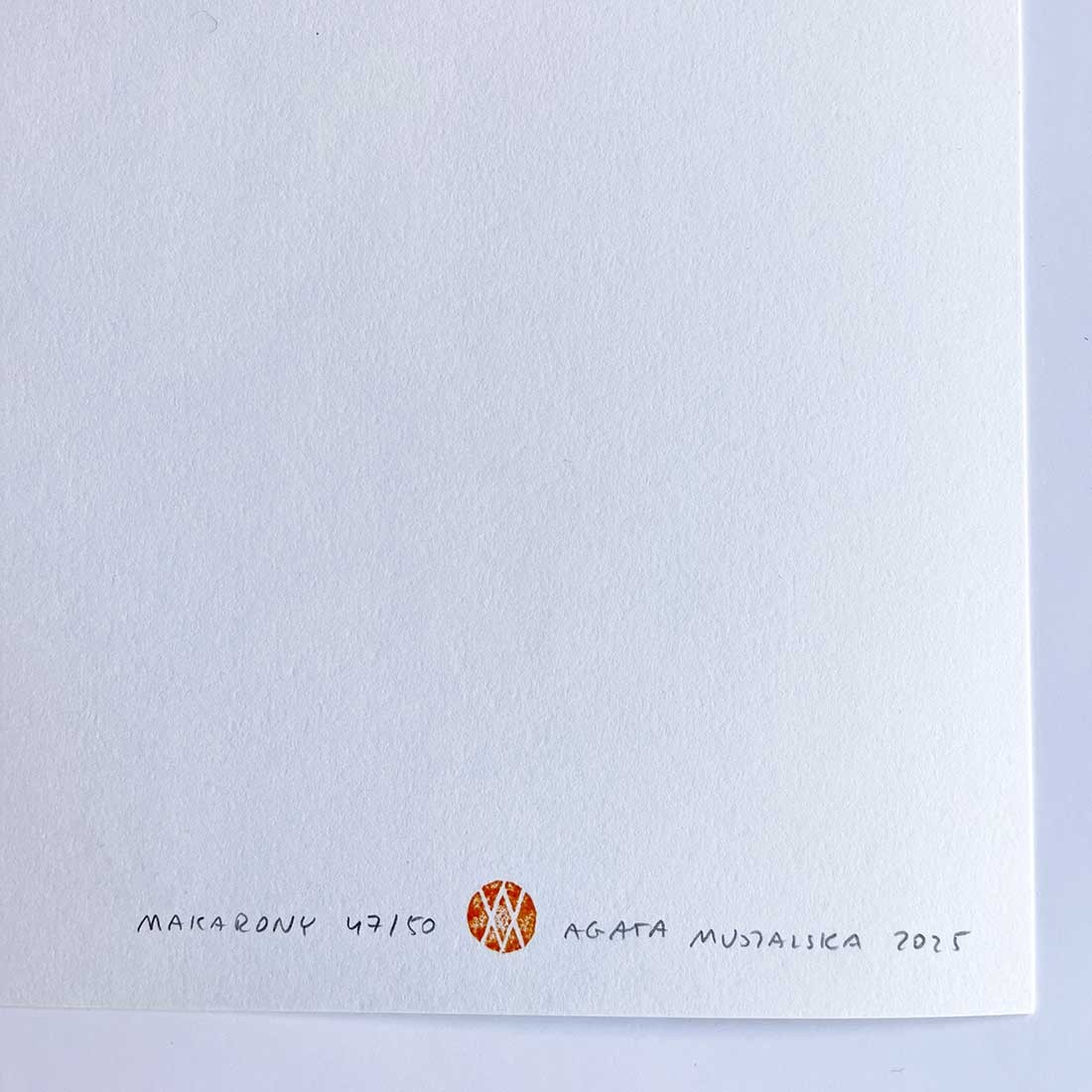 Każda grafika jest częścią limitowanej edycji, sygnowana suchą pieczęcią, stemplowana i własnoręcznie podpisana przez autorkę.