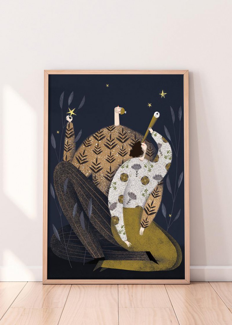 Piękne detale, nawiązujące do stylistyki retro, sprawiają, że plakat "Star Watchers" będzie wyrazistym elementem domowej galerii. Idealny prezent dla tych, którzy lubią marzyć, chodzić z głową w chmurach i szukać spadających gwiazd.