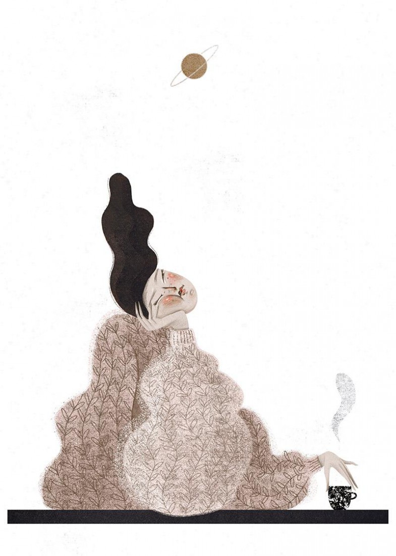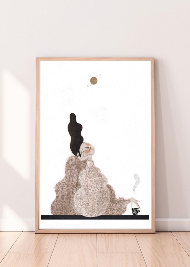 Chwila wytchnienia, zatrzymania, zanurzenia w myślach - plakat "Daydream" jest pełną uroku ilustracją stanu, gdy czas staje w miejscu, a my oddajemy się marzeniom. Grafika Ani Rudak będzie wyjątkowym elementem domowej galerii, doda charakteru i wyrazistości wnętrzom.