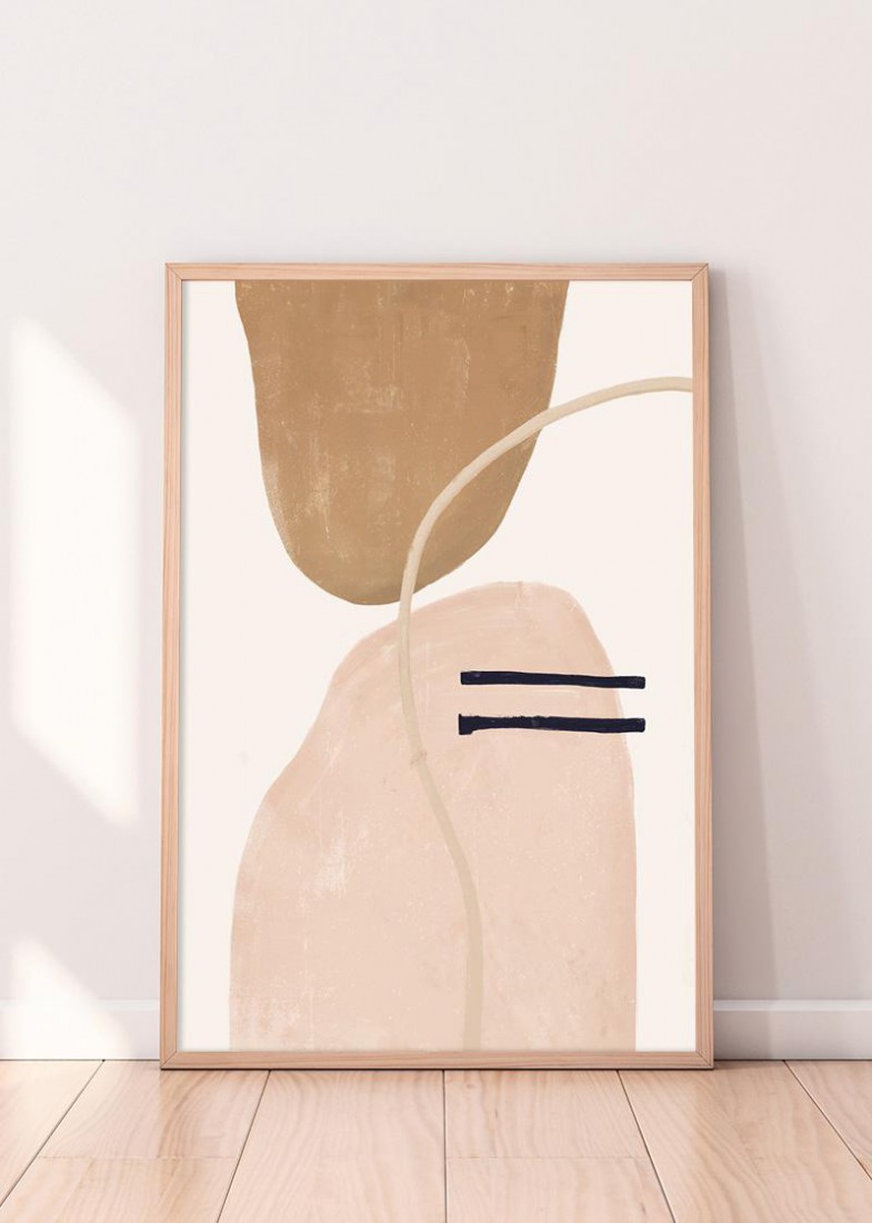 Malarska forma i stonowane plamy koloru tworzą intrygującą i subtelną kompozycję. Plakat, który nada wyjątkowy klimat w sypialni, dużym pokoju lub gabinecie. Oryginalny prezent dla siebie i bliskich.
