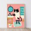 Scena z życia codziennego: czarno-biały kot myje łapki nad umywalką, nad nim narysowane na zaparowanej tafli serduszko, w tle zasłona prysznicowa w rybki. Ot, zwykłe kocie życie. Plakat Ja Cię Broszę to pełna uroku dekoracja pokoi dziecięcych i wszystkich kotolubnych wnętrz.