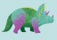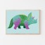 Piękny fioletowo-zielono-niebieski triceratops Leonardo uśmiecha się wesoło na ilustracji Kasi Kucwaj-Tybur. Artystka portretuje zwierzęta, tworząc pełne ciepła i uroku plakaty dla najmłodszych. Każdy z plakatów z serii będzie wyjątkową dekoracją pokoju dziecięcego!