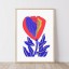 Plakat Agaty Muszalskiej z pięknym czerwono-niebieskim kwiatem, który wprowadzi do wnętrz mocny akcent koloru i energii! Grafika świetnie prezentuje się razem z pozostałymi plakatami z kwiatowej serii artystki.