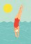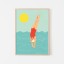 Skok do wody symbolizuje odwagę, radość i moc. Plakat Joanny Rosado wprowadzi do wnętrz kolory i pozytywną energię, zaczerpniętą ze słonecznego, beztroskiego dnia. Ilustracja pozwoli Wam zatrzymać letni klimat przez cały rok!