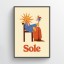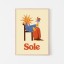 Wizerunek słońca w interpretacji Przemka Sokołowskiego: postać siedząca na krześle z kolorowym wiatraczkiem w dłoni. Barwna i urocza ilustracja będzie mocny akcentem kolorystycznym i doda oryginalności każdemu wnętrzu!