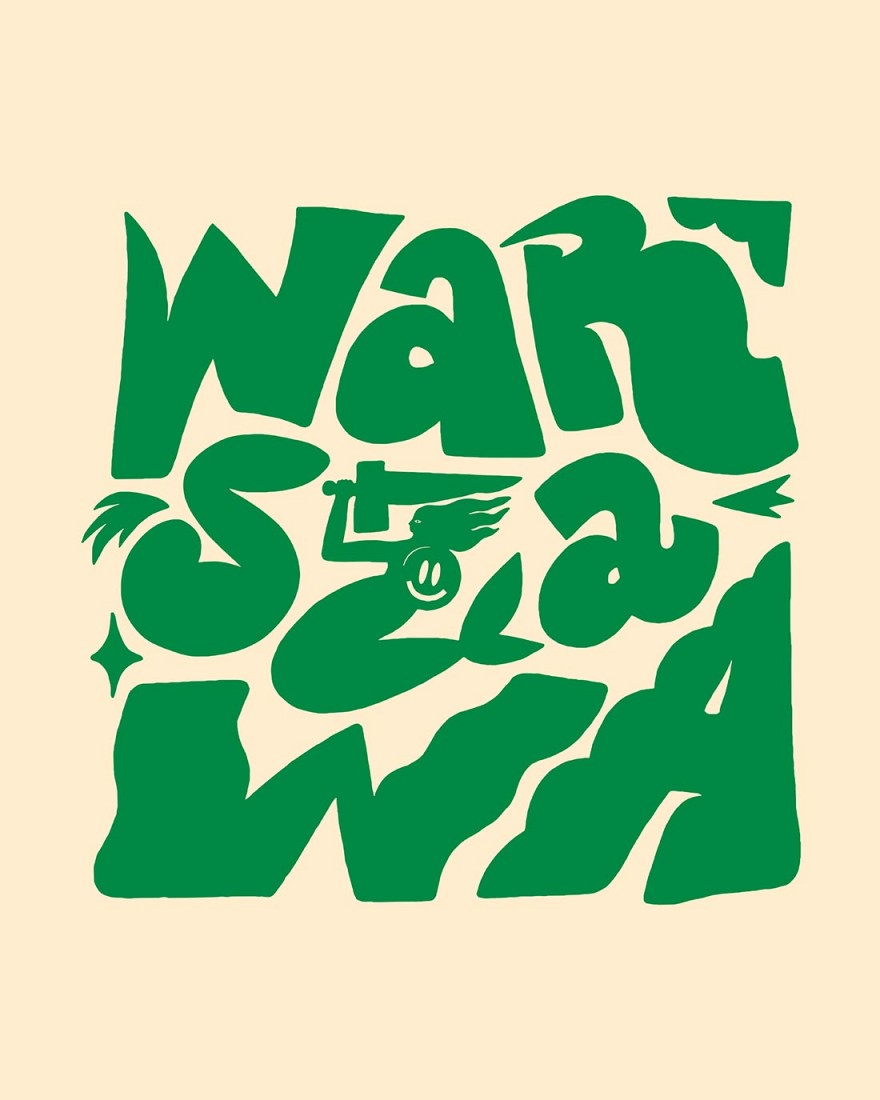 Typograficzny plakat Przemka Sokołowskiego "Warszawa" - wśród liter ukrywa się Syrenka, fale Wisły, może dostrzeżecie coś jeszcze? Plakat w dwóch wersjach do wyboru - w orientacji pionowej lub kwadrat.